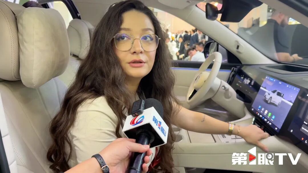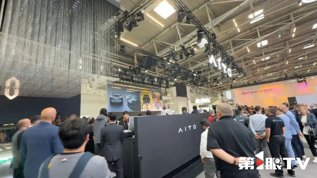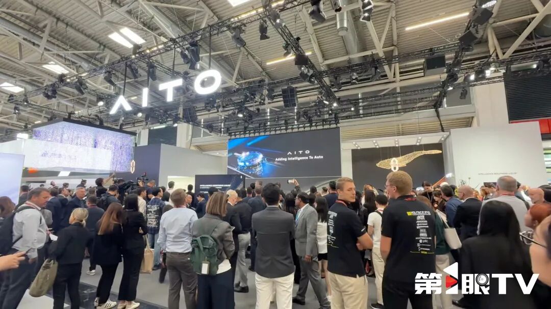 第1眼TV记者看到,来到展台的体验新车的国外观众接连不断,他们被问界的豪华设计和智能魅力深深吸引。