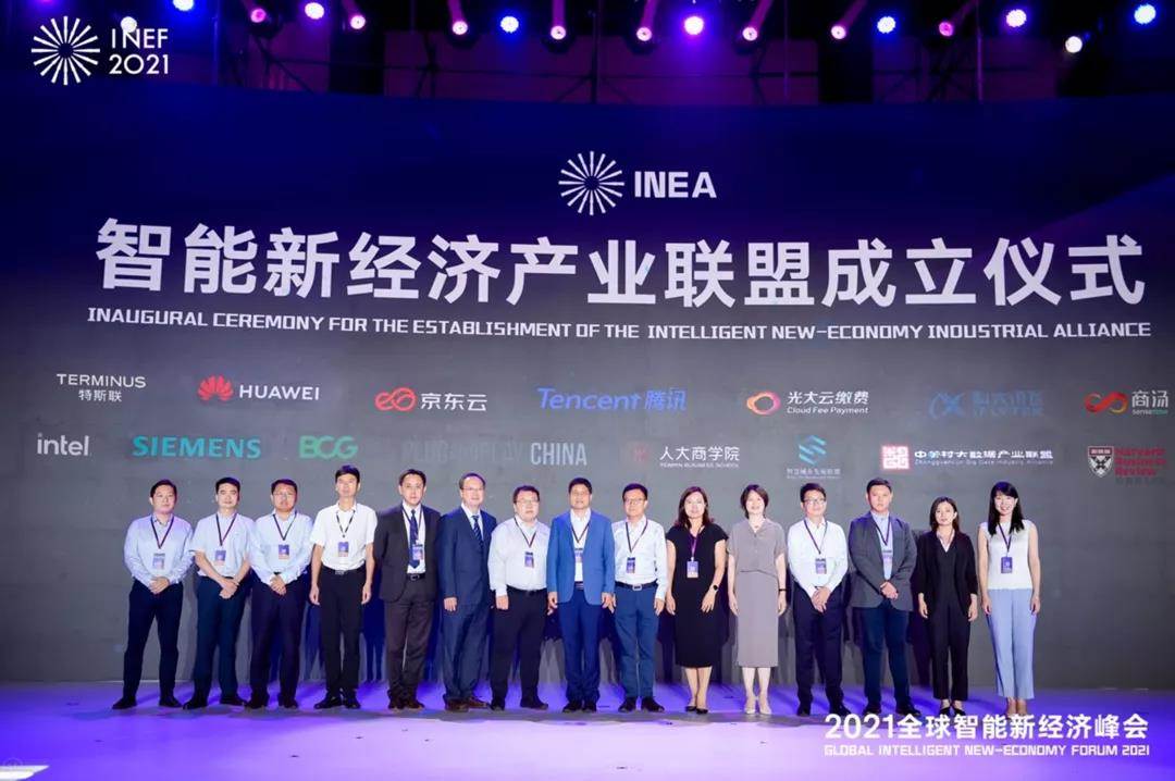 ▲15家智能新经济产业联盟(INEA)发起单位代表共同见证联盟成立仪式。
