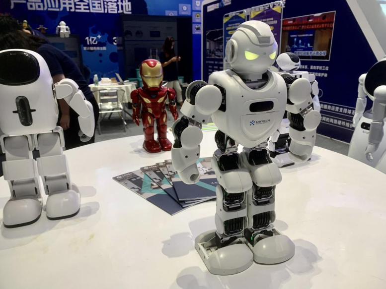 人工智能主题展区重点展示校园数字装备,通过校园、教室的物联化、信息化设备,丰富教学形态。落户两江新区水土新城的乐聚机器人带来了以人形机器人为核心的全学段人工智能教育服务方案。