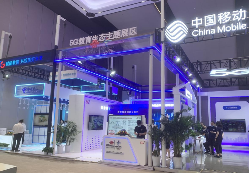 在5G教育生态主题展区,移动、电信、联通重点展示了5G时代的教育城域网建设。据悉,5G教育生态通过加快推进 5G 网络、校园有线网、无线网、物联网等多网融合,统一出口形成教育一张网,打造数据互联互通、资源共享、信息交换和远程教育管理。