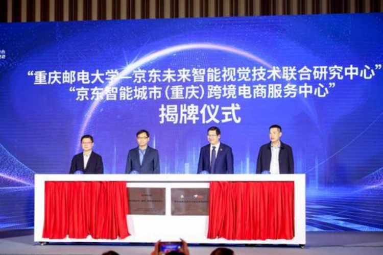 ▲京东智能城市(重庆)跨境电商服务中心、重庆邮电大学与京东未来智能视觉技术联合研究中心揭牌。