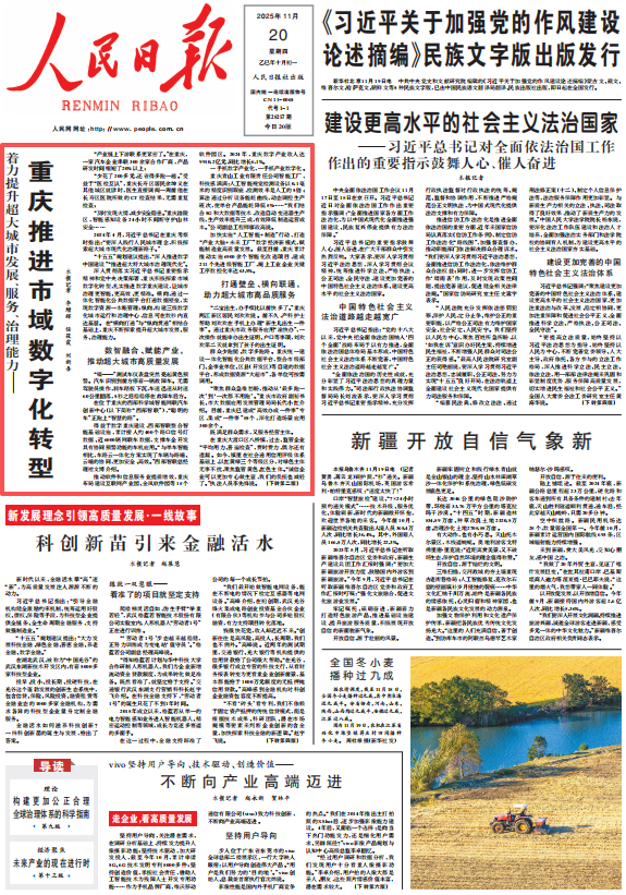 ▲《人民日报》2025年11月20日第01版