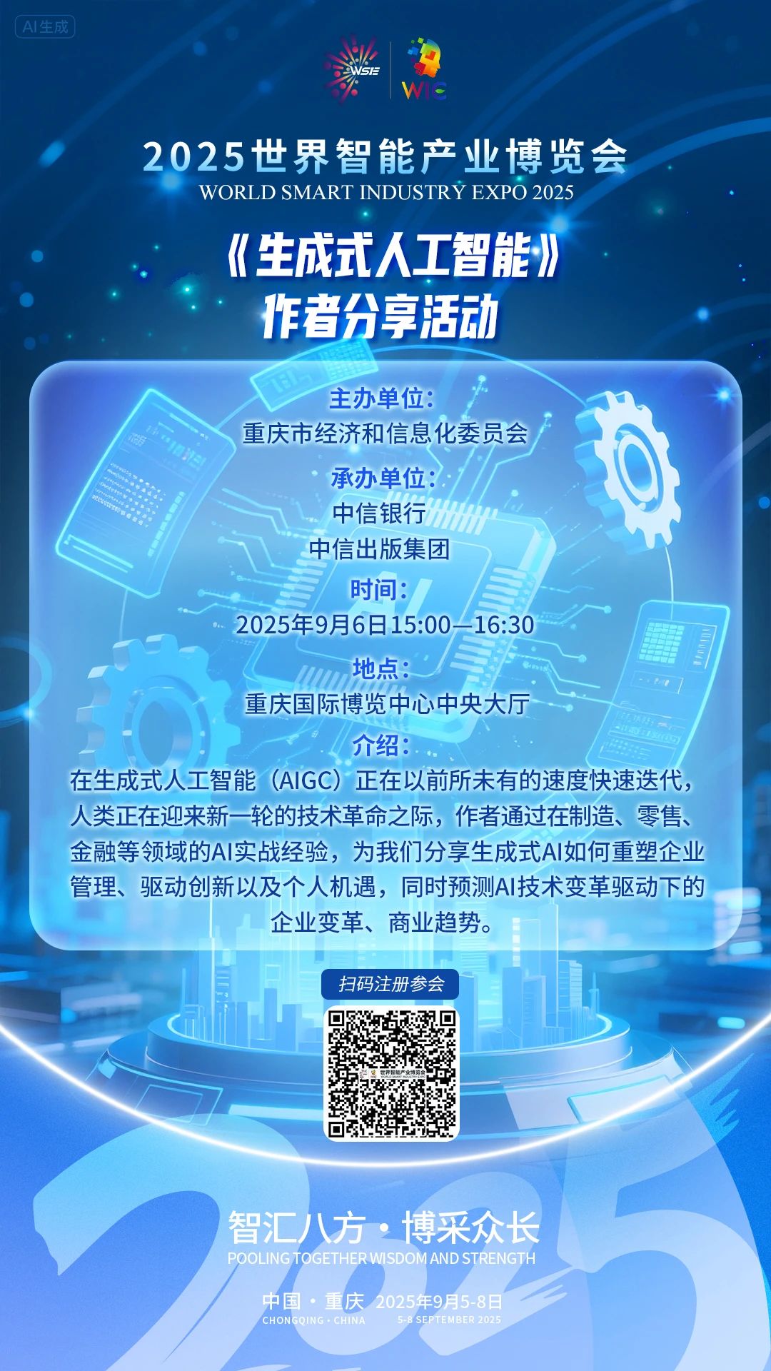 2025世界智能产业博览会产业交流活动预告:《生成式人工智能》作者分享活动
