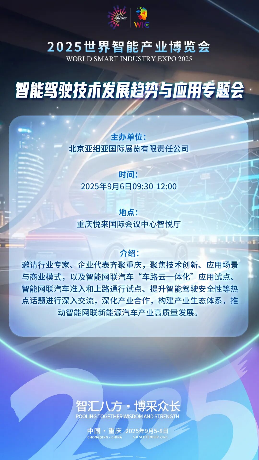 2025世界智能产业博览会产业交流活动预告:智能驾驶技术发展趋势与应用专题会