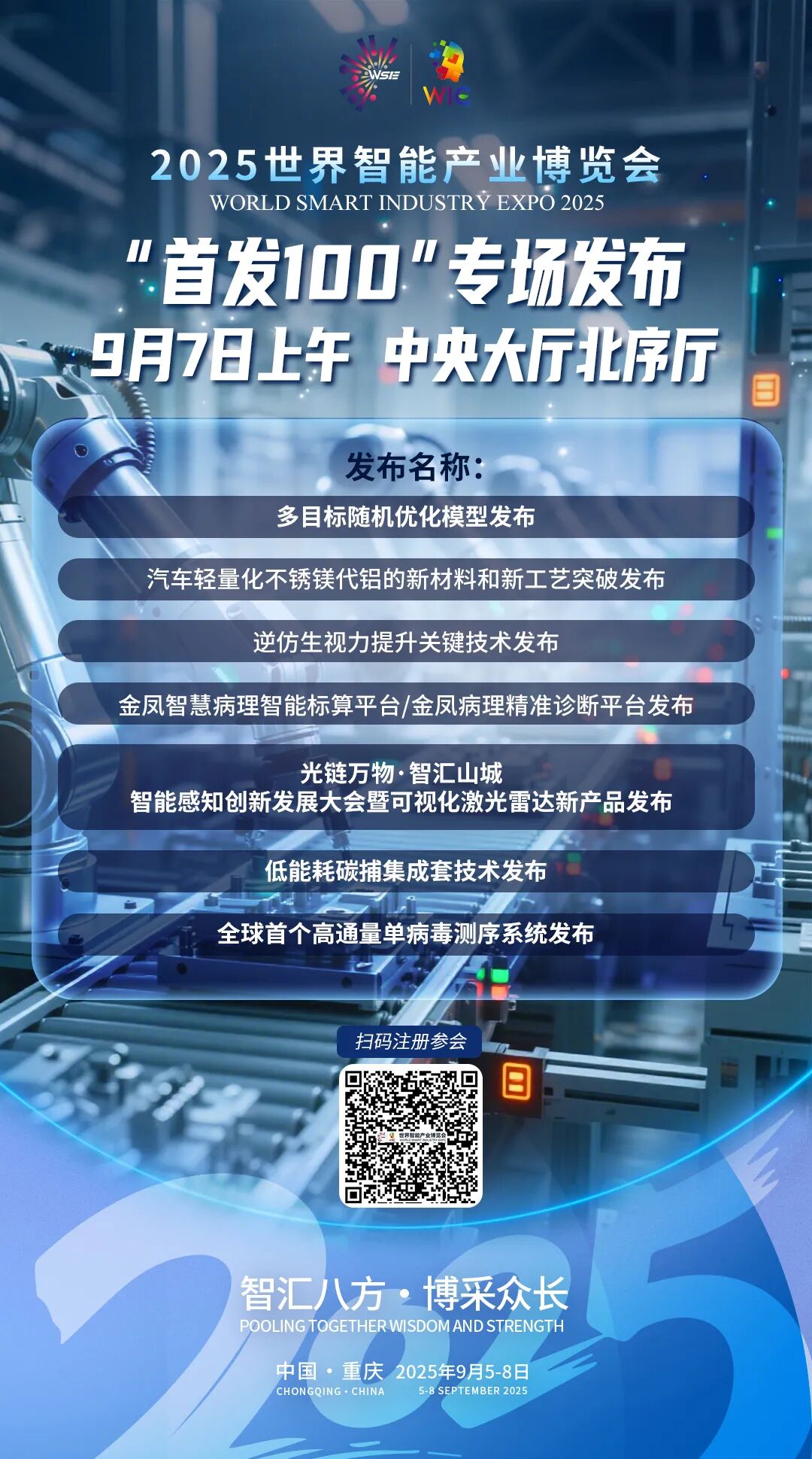 2025世界智能产业博览会“首发100”专场发布预告:重庆国际博览中心中央大厅北序厅9月7日上午系列发布活动