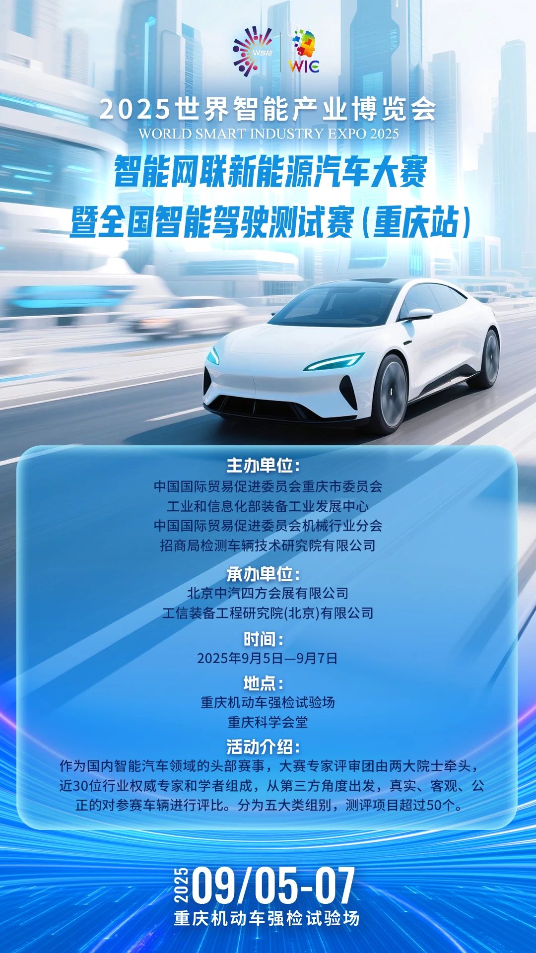 2025世界智能产业博览会专业赛事预告:2025智能网联新能源汽车大赛暨全国智能驾驶测试赛(重庆站)