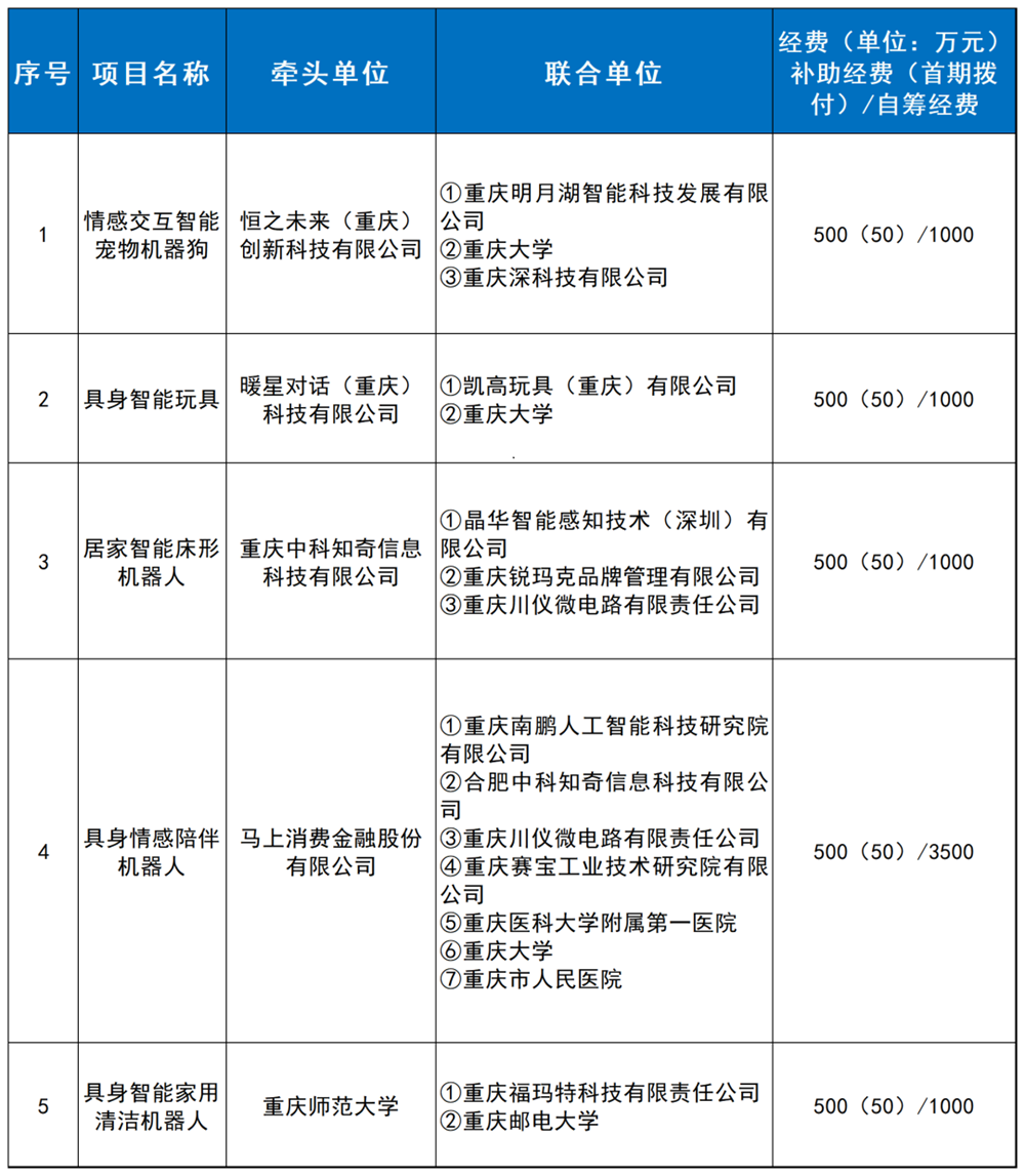 市经济信息委表示,此次公布的5类具身智能产品,部分已经在市场投用并反馈良好。比如由马上消费金融股份有限公司作为牵头单位,联合重庆大学、重庆市人民医院等多个单位共同开发的“具身情感陪伴机器人”,此前入驻重庆市第一社会福利院,深受不少老年人喜爱。