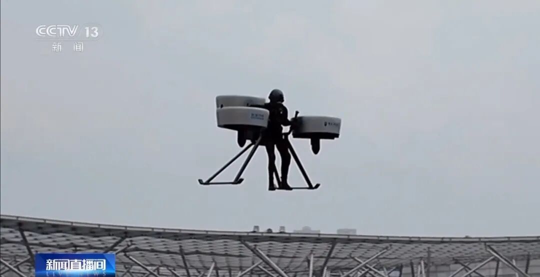 此前,飞行背包在会场外的指定区域进行试飞,为了保证安全,目前还用的是假人。飞行背包还配置有一套自动弹射降落伞来保障安全。未来这样的飞行背包能带你体验1000米以下,10公里以上的空中飞行航程。