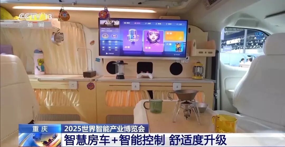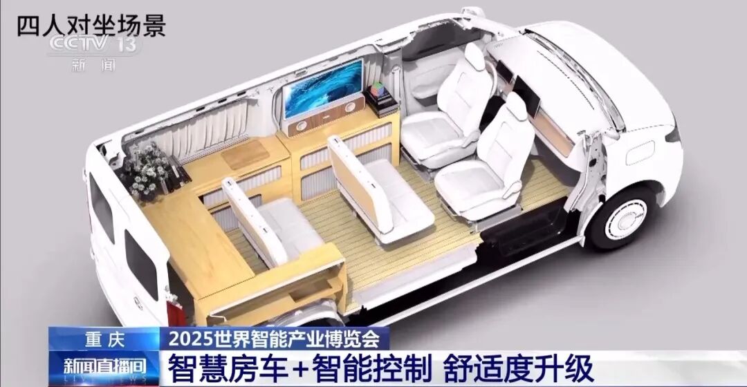 智博会上,还能看到不少贴近日常的生活用车。比如这辆非常吸睛的房车,它的设计充满巧思,不仅遮阳棚能方便收缩,车顶还能快速拓展出高挑空间,让户外休息时的通透感和舒适感直接拉满。