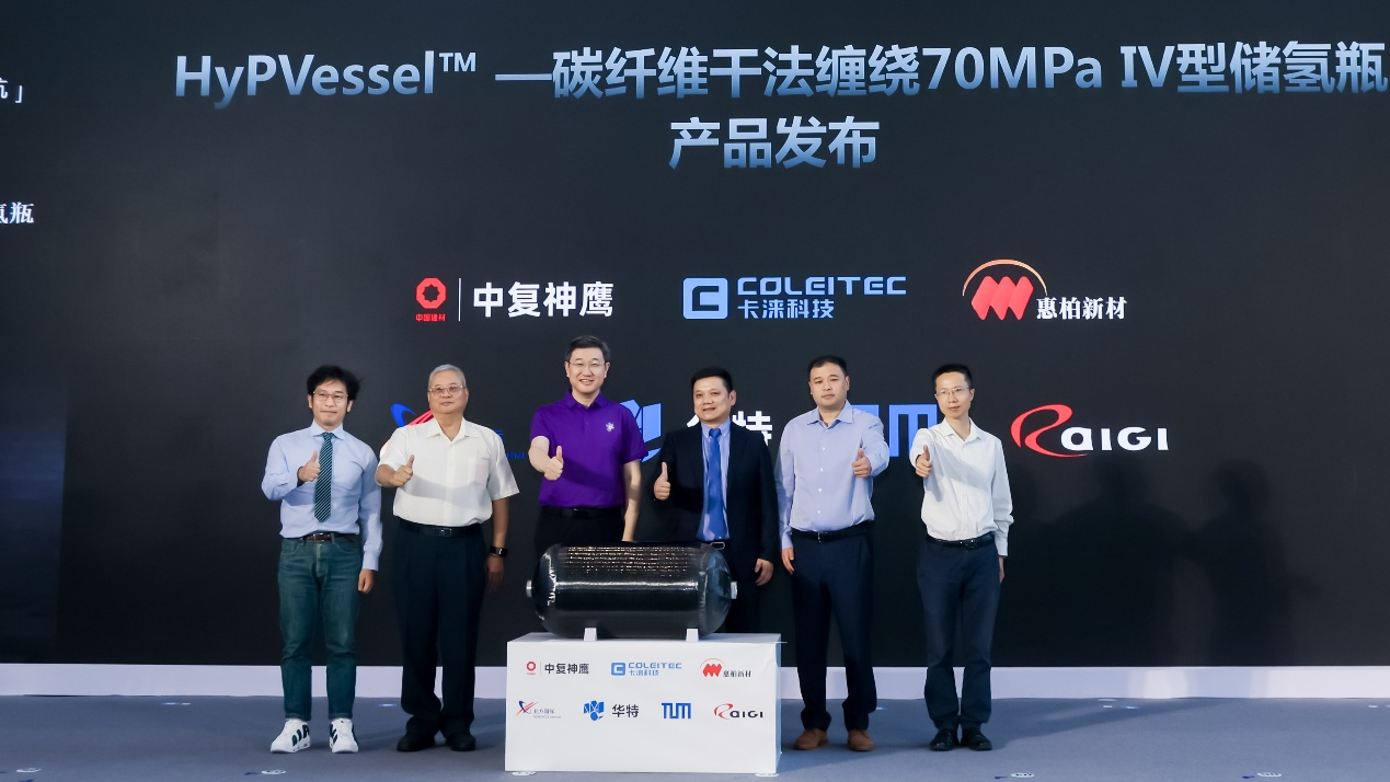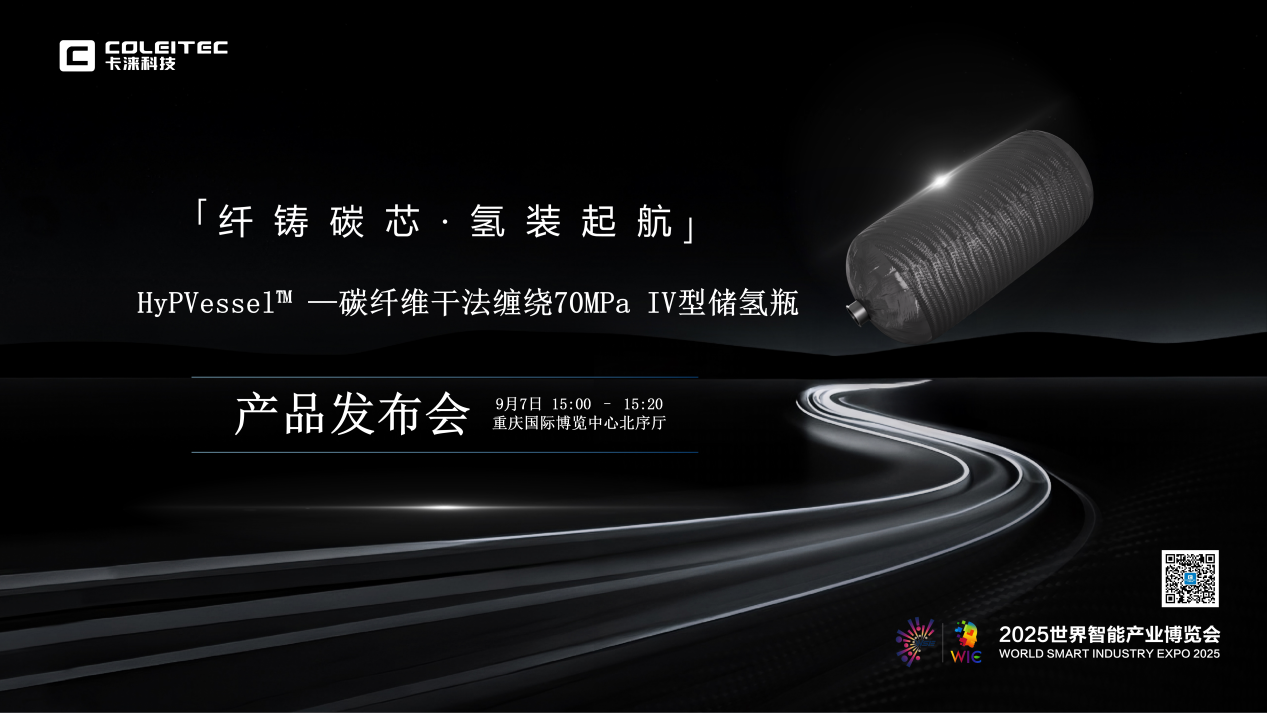 9月7日,卡涞科技在2025世界智能产业博览会期间,于重庆国际博览中心北序厅发布专区,正式推出“Coleitec HyPVesselTM干法缠绕碳纤维70MPa IV型储氢瓶”。Coleitec HyPVesselTM是国内首个以国产碳纤维与树脂制备的预浸纱,配合自主可控工艺技术开发的干法缠绕70MPa IV型储氢瓶,适配氢能商用车、氢能乘用车、氢能无人机、氢能储能等多个应用领域,开发的具有国际领先水平的干法缠绕70MPa IV型储氢瓶。HyPVesselTM的正式推出,标志着卡涞科技正式切入氢能领域,耕耘万亿新赛道。