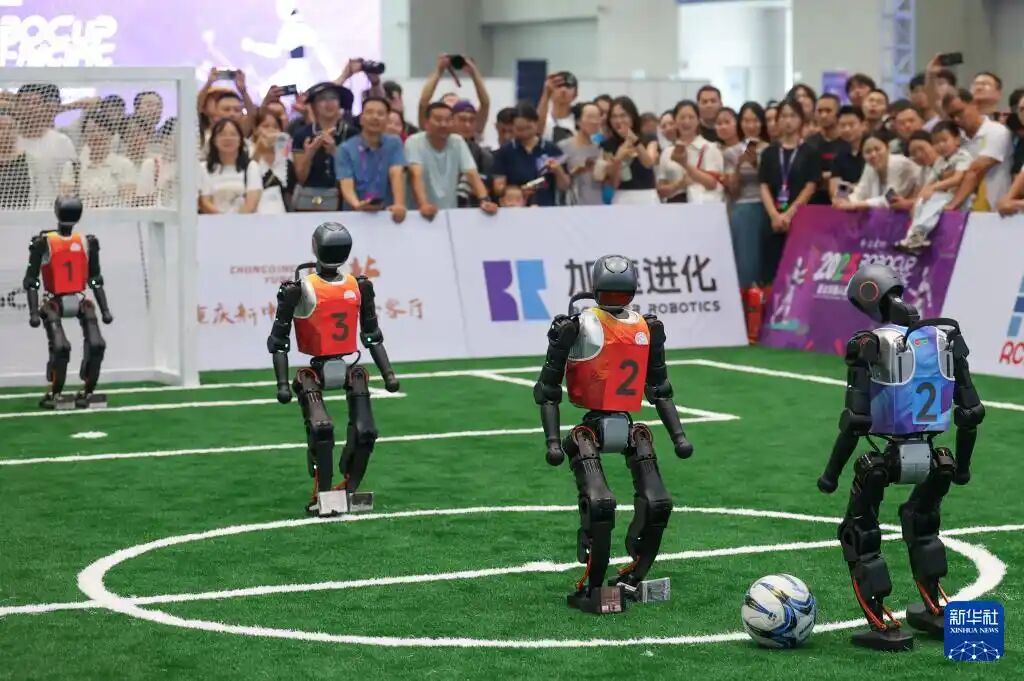 ▲9月5日,观众在2025世界智能产业博览会上观看人形机器人足球赛。记者 陈诚 摄/新华社