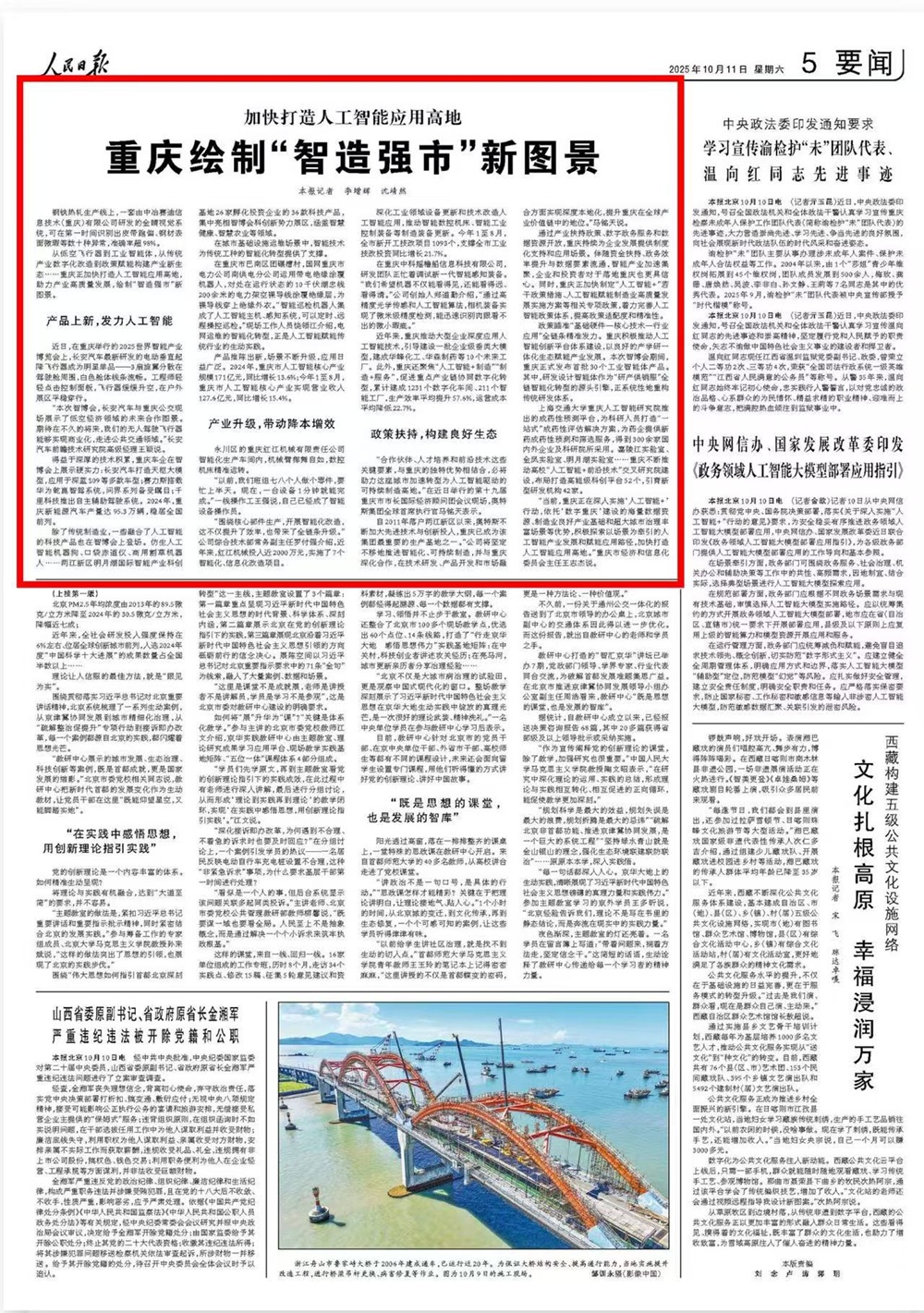 通过产业扶持政策、数字政务服务和数据资源开放,重庆持续为企业发展提供制度化支持和应用场景。伴随资金扶持、政务效率提升与数据要素流通,智能产业加速集聚,企业和投资者对于落地重庆也更具信心。同时,重庆正加快制定“人工智能+”若干政策措施、人工智能赋能制造业高质量发展实施方案等相关专项政策,着力完善人工智能政策体系,提高政策适配度和精准性。