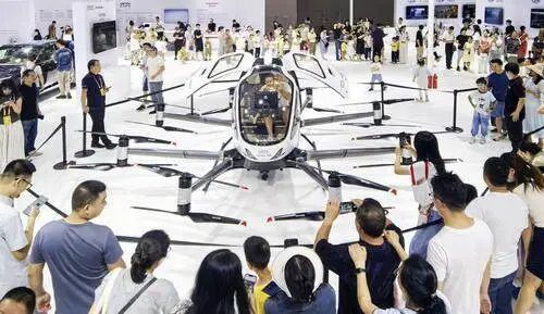 ▲9月7日,重庆国际博览中心,智能网联新能源汽车展区,市民排队打卡飞行汽车。首席记者 龙帆 摄