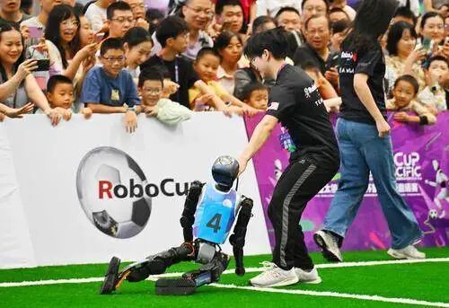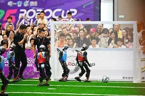 当然,这些钢铁“球员”在赛场上也有不少可圈可点之处:它们能自主拼抢、断球、防守、反击、射门,跌倒了都能自己爬起来。