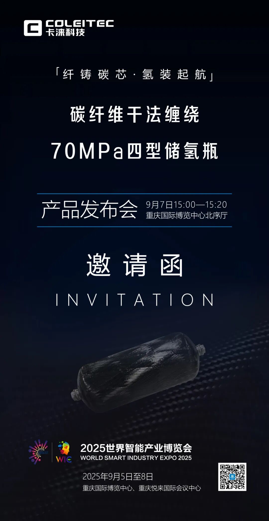 智博请柬|卡涞科技碳纤维干法缠绕70MPa四型储氢瓶发布会