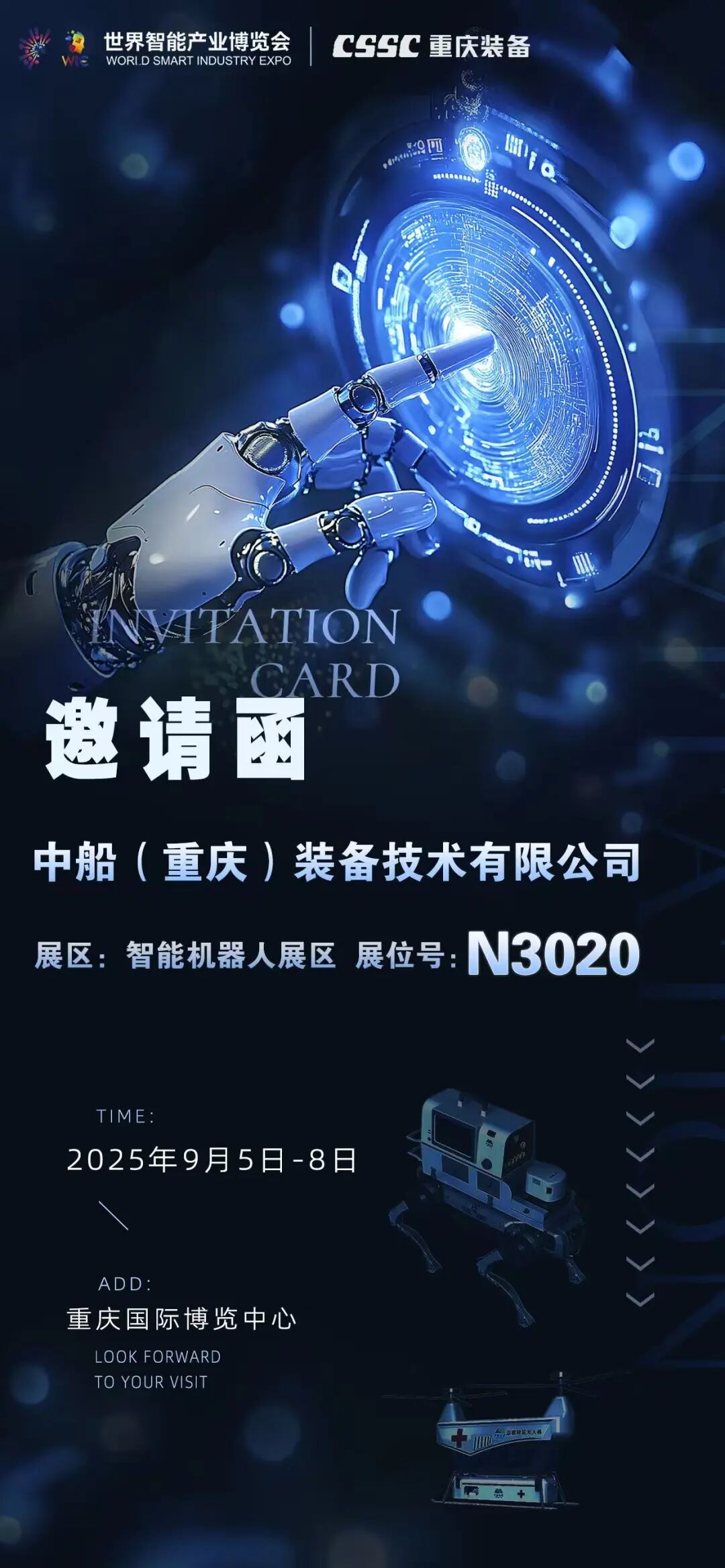 重庆装备将携人形机器人关节模组、急救机器人、便携式急救设备、无线传能系统等多款核心产品参展,现向您发出诚挚邀请,期待您的莅临!