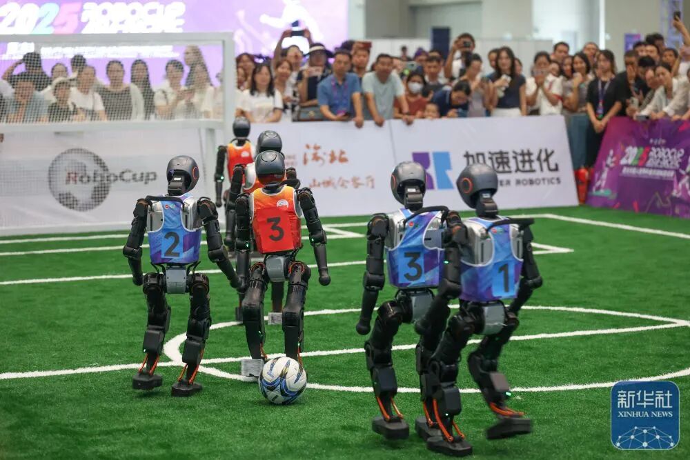 ▲这是9月5日在2025世界智能产业博览会拍摄的机器人3V3足球赛。