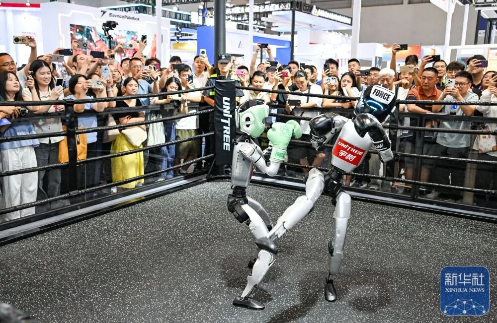 ▲这是9月5日在2025世界智能产业博览会宇树科技展厅拍摄的机器人拳击赛现场。