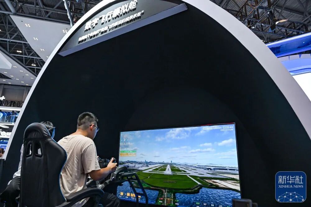 ▲9月5日,观众在2025世界智能产业博览会上体验“数字飞行模拟舱”。