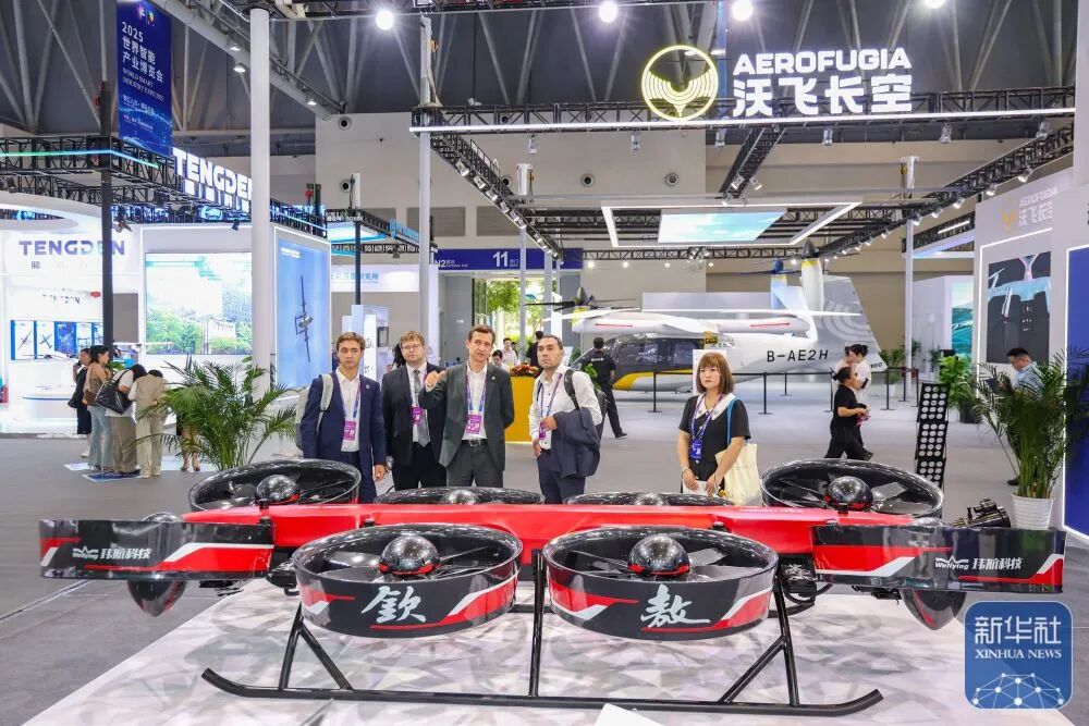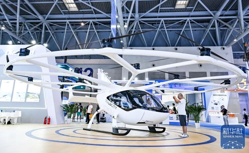 ▲9月5日,观众在2025世界智能产业博览会上参观电动垂直起降飞行器。