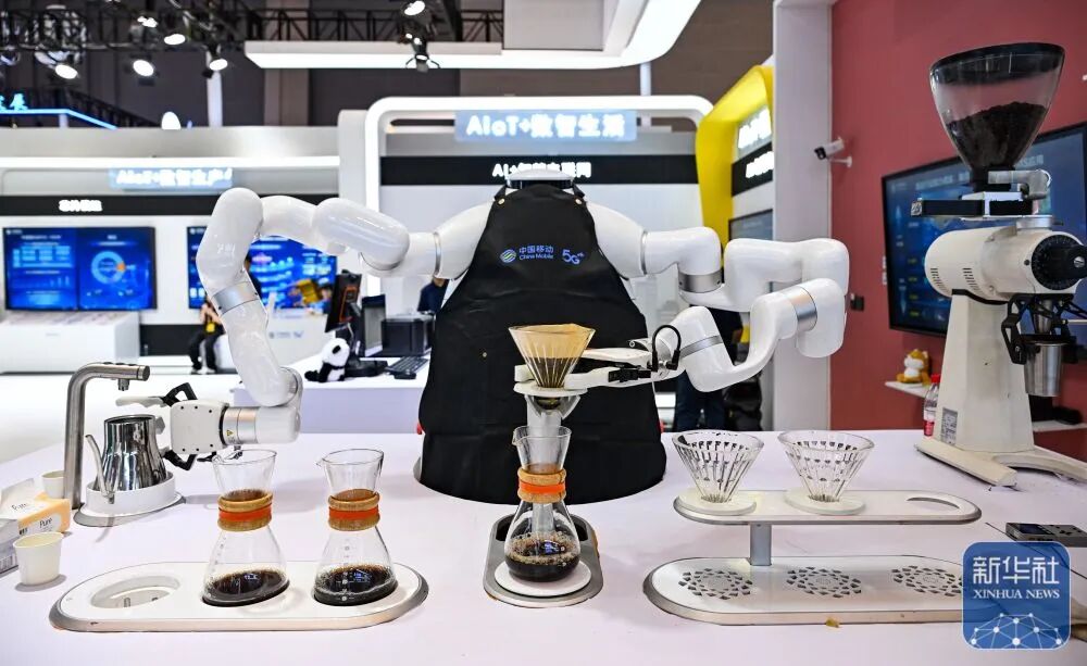 ▲这是9月5日在2025世界智能产业博览会中国移动展厅拍摄的“咖啡机器人”。