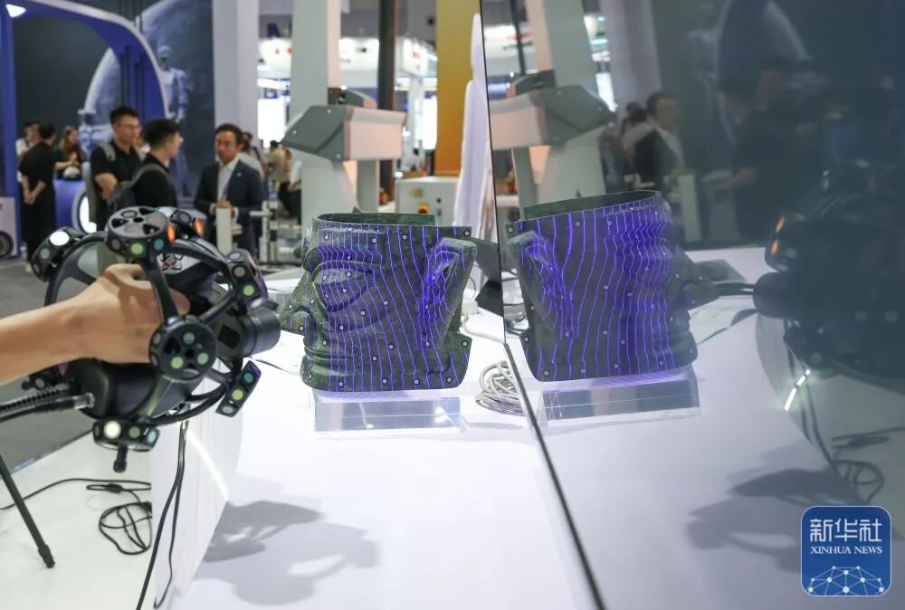 ▲9月5日,工作人员在2025世界智能产业博览会上演示跟踪式三维扫描仪。