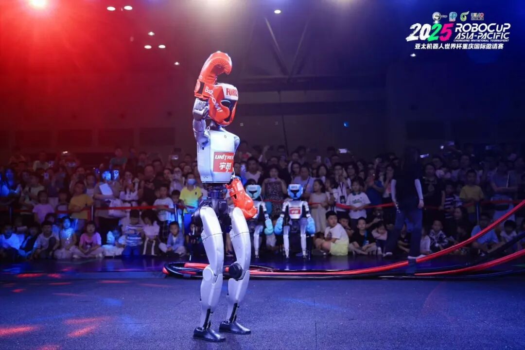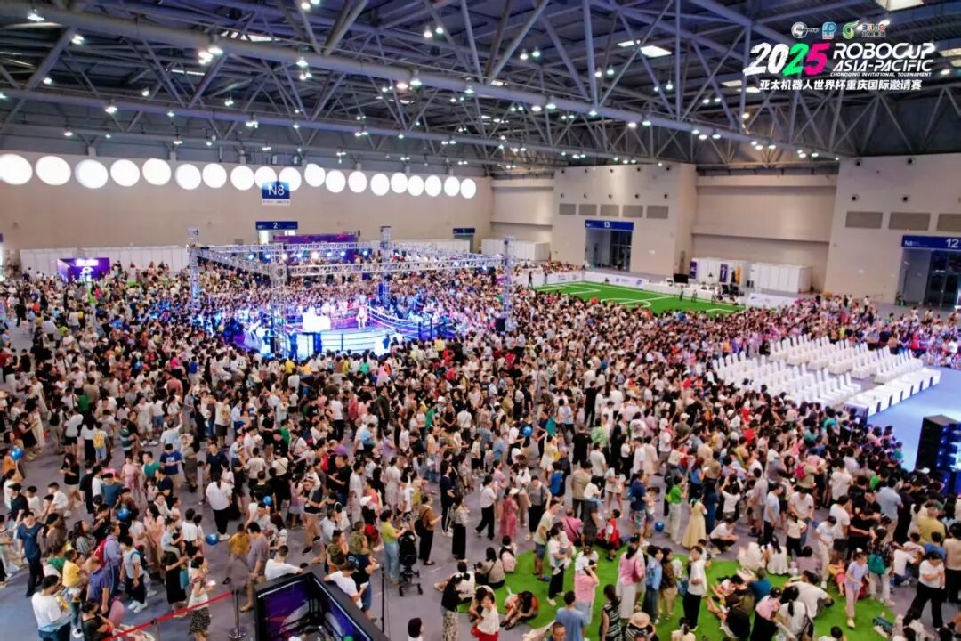 让主办方亚太机器人世界杯国际理事会和重庆市渝北区人民政府倍感振奋的是,经过精心组织和安排,开赛三天,每天前来观赛的人络绎不绝,N8馆火爆异常。看到人形机器人踢足球、打拳击,观众们反响热烈。一方面,这是继今年8月在北京举行2025世界人形机器人运动会以来,人形机器人赛事再次在全球集中亮相;另一方面,新奇好玩的比赛给了人们对于AI、具身机器人等前沿科技的无限畅想,一个科技展现的未来在现实生活中得到了最真实的展现。