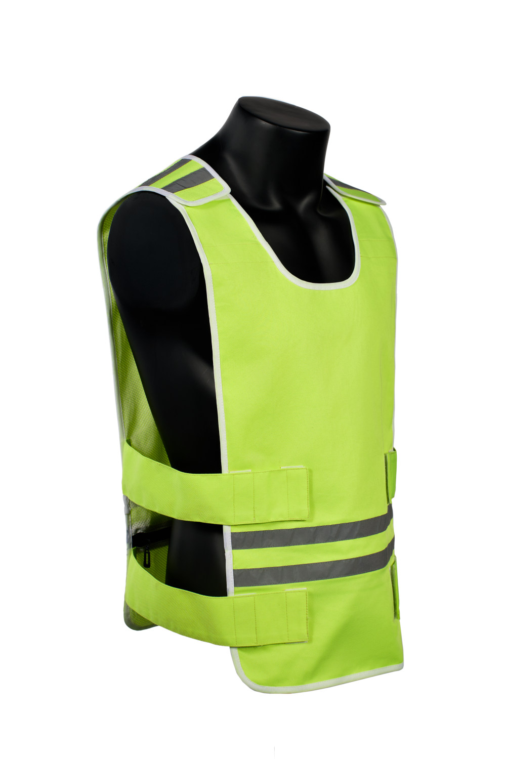 这种降温服使用起来也很方便,且持续降温时间较长:使用前无需注水,在22-25℃空调房放3-4小时、20℃凉水中泡30分钟,或是放冰箱冷藏层30分钟、冷冻层10分钟,即可完成蓄冷。穿在身上时,在35℃环境下可持续降温2-3小时,40℃高温下也能持续降温1-2小时。它有适合不同户外劳动者的多种款式,重量仅在600-1500g之间,短时间穿戴无负担。
