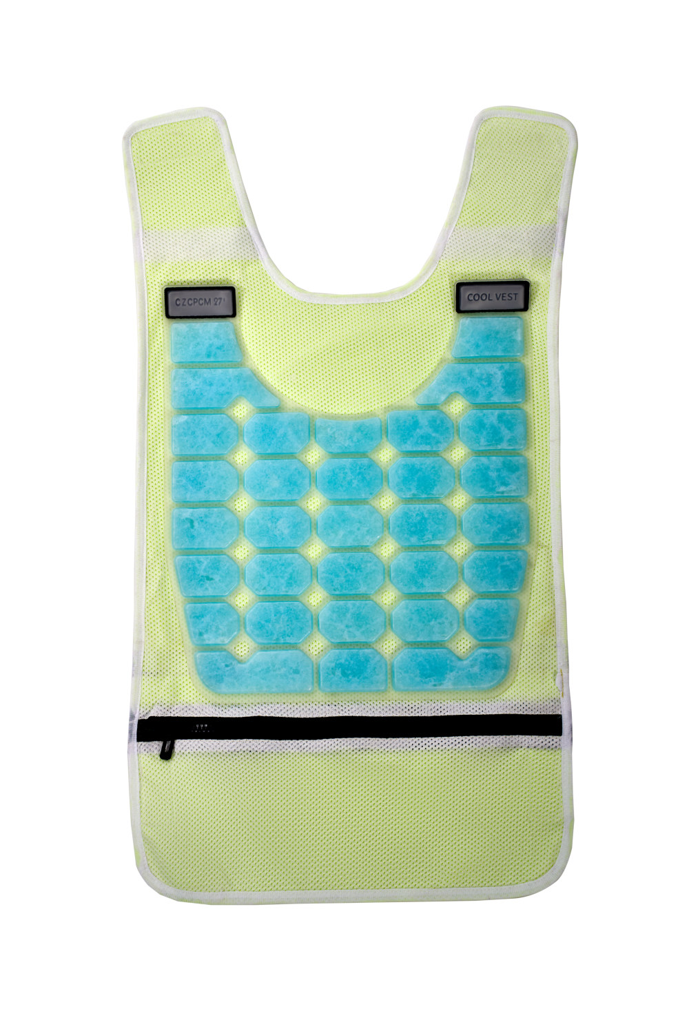 与普通马甲不同,这种降温服多了由生物基相变材料做成的内胆。生物基相变材料是一种能根据环境温度变化调节自身温度的创新材料,可自动吸热和蓄冷。当内胆完成蓄冷后温度为27℃,和人体有近10℃温差,人穿上降温服后,内胆就会形成自动温度调节系统,快速吸收体表热量,给人带来清凉,且对人体无害。