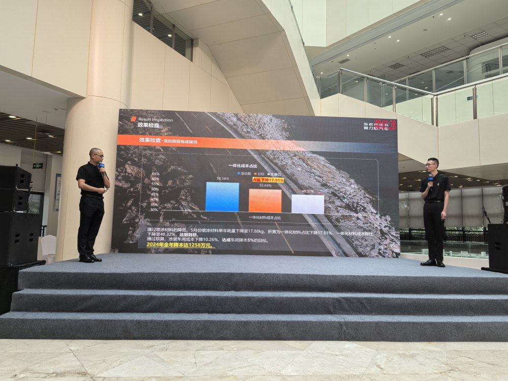 以赛力斯汽车有限公司QC小组的“降低F2涂装一体化材料成本占比”项目为例,通过推行“脉冲式清洗”和“慢速填充”标准程序,成功解决机器人换色污染问题,使C/1000指标从80降至45,一次合格率提升3.5%。该项目实现单车材料消耗降低5.82公斤,单车成本减少202.5元,年累计降本达1258万元。同时,面漆线生产净节拍由41.5JPH提升至43JPH,效率提高3.61%,日节约能耗及人工成本约2万元,单车VOCs排放量降低1.52kg,年减排约312吨。
