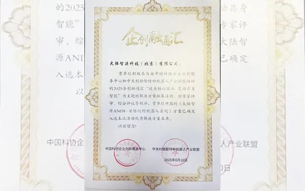近日,由中国科协企业创新服务中心与中关村融智特种机器人产业联盟联合主办的“2025企创融通汇具身智能机器人核心部件专场活动”在北京圆满落幕,大陆智源受邀参与此次活动。本次会议中,《大陆智源ANDI-安防巡检机器人系列》方案经组委会审核,成功入选《2025企创融通汇“攻关核心技术 灵动具身智能”主题优秀解决方案》榜单。