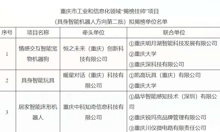 +5!重庆第二批具身机器人“揭榜挂帅”项目出炉