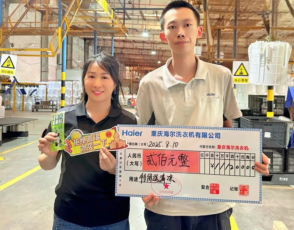▲重庆海尔洗衣机党支部向员工发放防暑降温福利。受访者供图