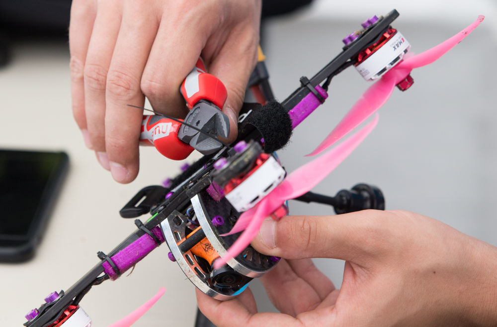 2017年9月3日,在瑞士洛桑联邦理工学院举行的“无人机节”上,一名参加无人机速度竞赛的选手在比赛间隙调整自己的无人机。(新华社记者徐金泉摄)