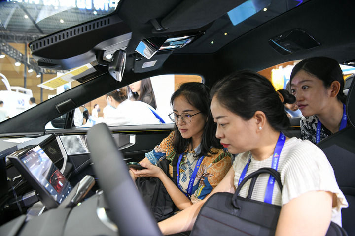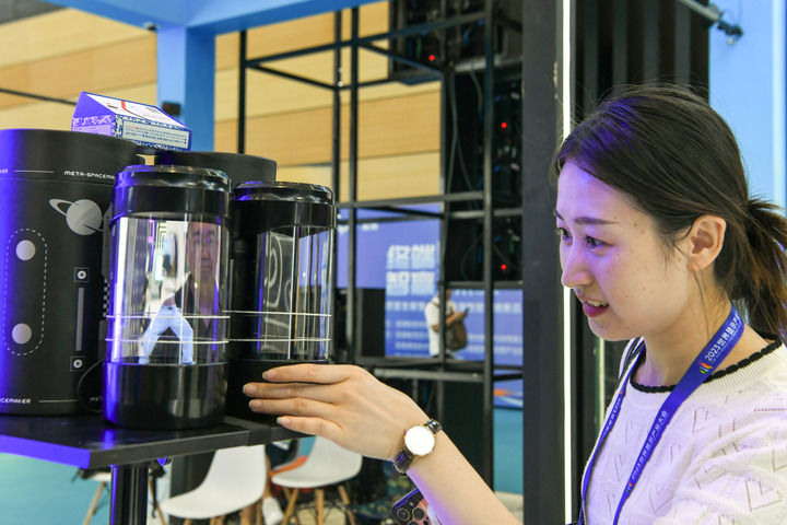 9月7日,在“2023世界显示产业大会新型显示创新成果展”现场,观众在查看全息舱产品。新华社记者 唐文豪 摄
