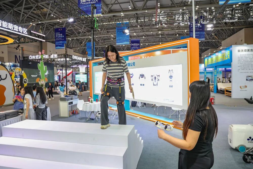 ▲2025年9月5日,在重庆举行的2025世界智能产业博览会上,观众体验外骨骼机器人。新华社记者 黄伟 摄