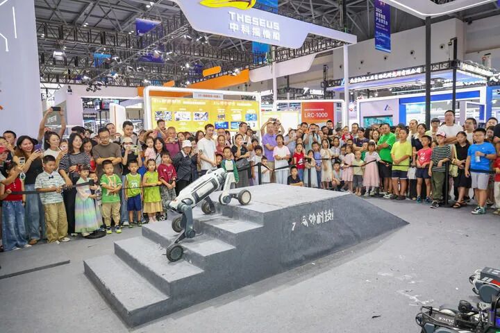 ▲2025年9月7日,在重庆举行的2025世界智能产业博览会上,一款机器狗在展示技能。新华社记者 黄伟 摄