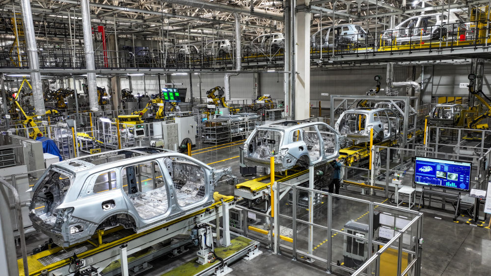 9月19日在位于重庆市两江新区的赛力斯汽车超级工厂拍摄的自动化生产作业现场。