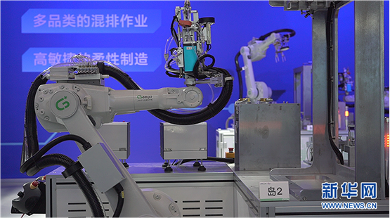 8月23日,吉利工业互联网在中国国际智能产业博览会上展示的柔性产线。新华网 耿骏宇 摄