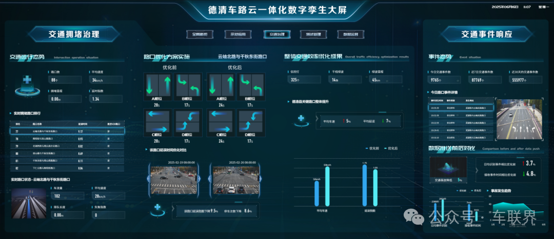 该项目利用C-V2X车路协同、融合感知、智能网联汽车云控平台等关键技术,实现车路云数据融合,从而支撑动态路权公交优先车道、基于大数据的交通信号优化、交通事件感知、行人防碰撞等创新应用场景。截至目前,动态路权公交优先车道场景已在德清大道覆盖8公里全息道路,实现公交道路开放共享引导、阻碍公交运行避让提示等功能,有助于缓解城市交通拥堵,提升德清智治水平。交通信号优化场景,经过在德清部分路口的实践,优化后的路口平均延误下降了10%。