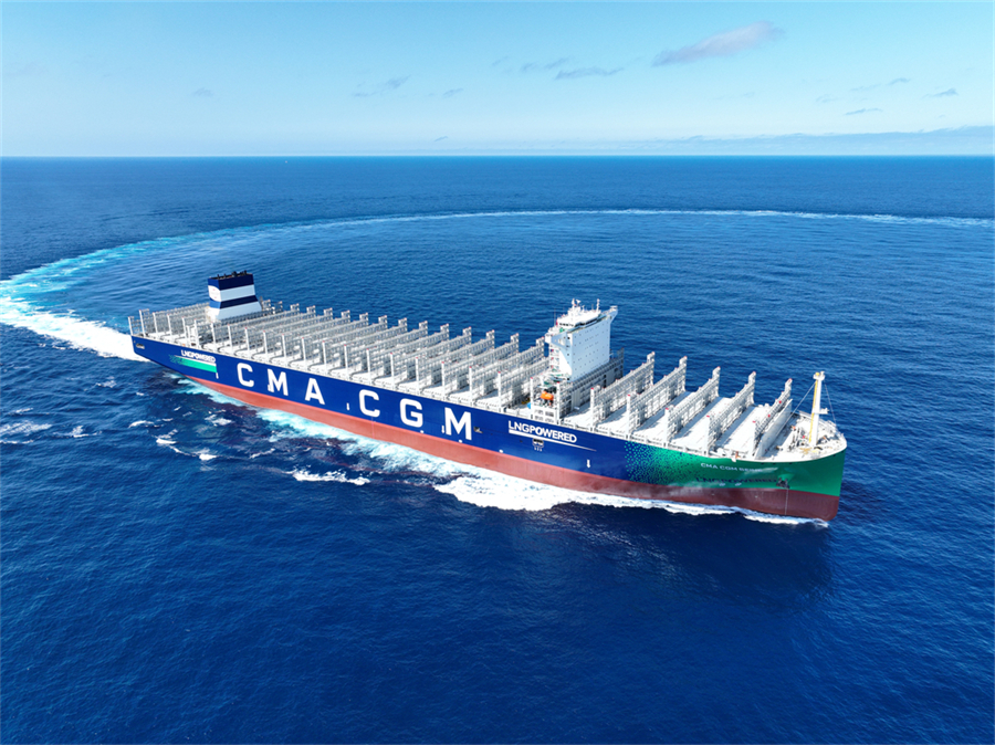 2024 年11月20日,中国船舶设计建造的24000箱级双燃料动力超大型集装箱船首制船提前10天顺利出坞。该船可承载22万吨货物,是中国船舶制造的最新一代“海上绿巨人”和“超级带货王”。