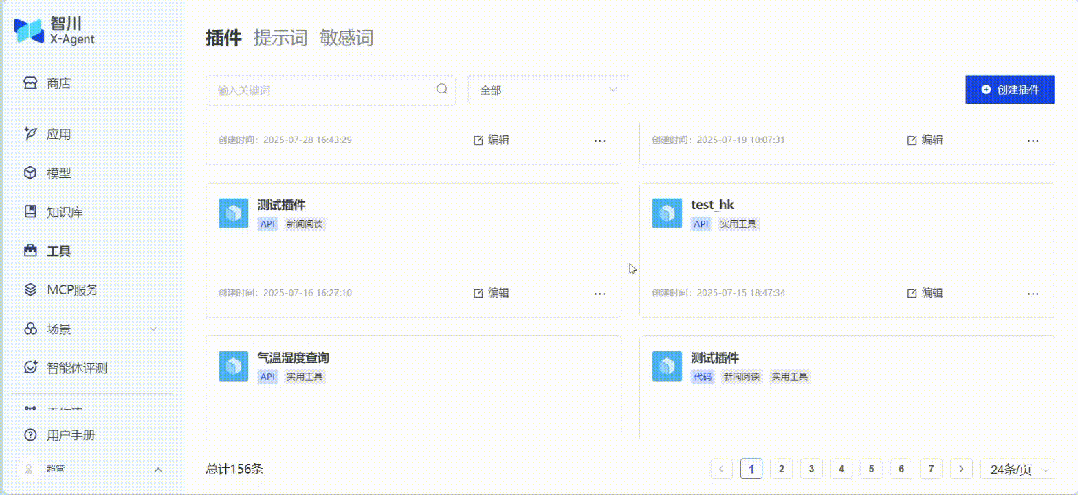 平台内置知识检索、问题分类、工具调用、LLM调用、代码执行、逻辑判断等组件,同时支持创建自定义插件,用户可按需不断扩展平台技能。