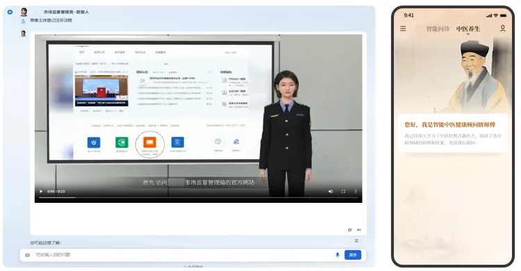 某市监局智能客服数字人:融合市监知识数据数据,搭建本地知识库,分流超 30% 重复问题,提高服务精准便捷度。