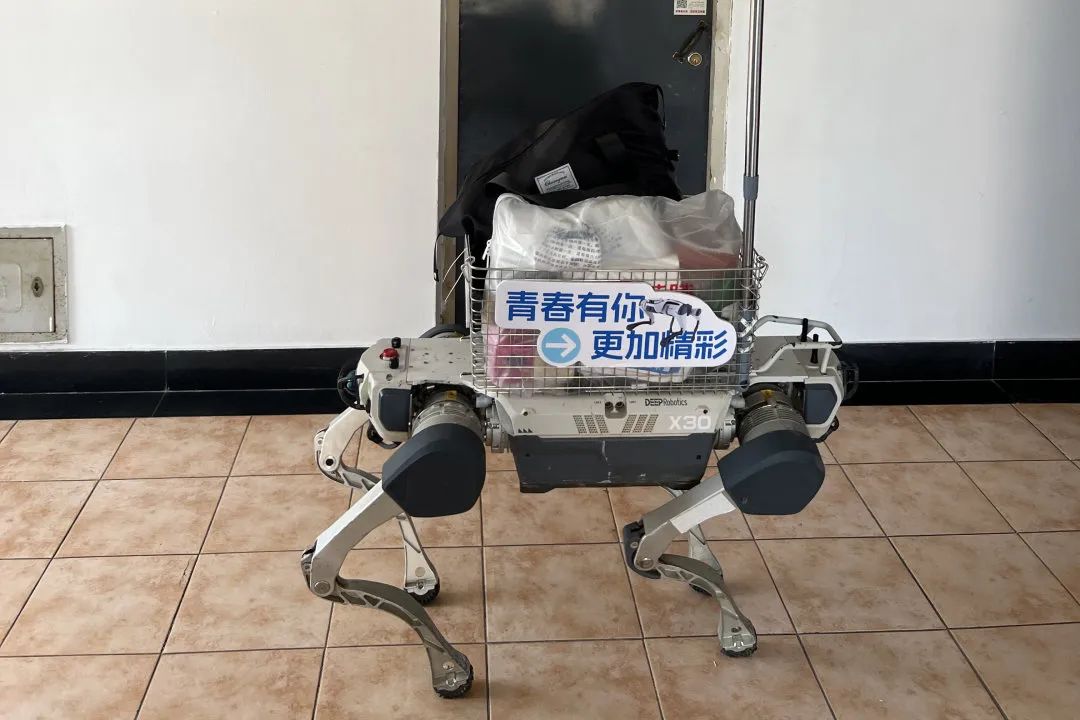 以往迎新季,总能看到家长和志愿者手提肩扛、奔波忙碌的身影。而今年,云深处机器狗组成的“搬运小队”高效上线,成为宿舍区沿途的焦点。