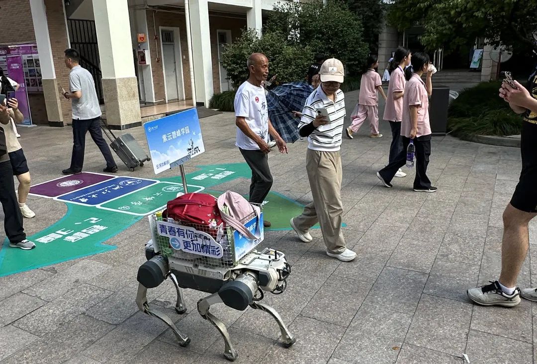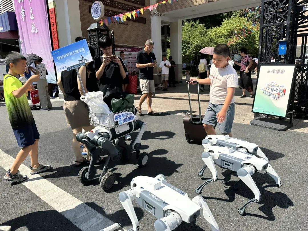 8月22日,浙江大学迎来新生报到日。在熙攘的报到处,一群特别的“志愿者”——云深处科技的机器狗,正穿梭于人群和行李之间,成为校园里一道亮眼的科技风景线。